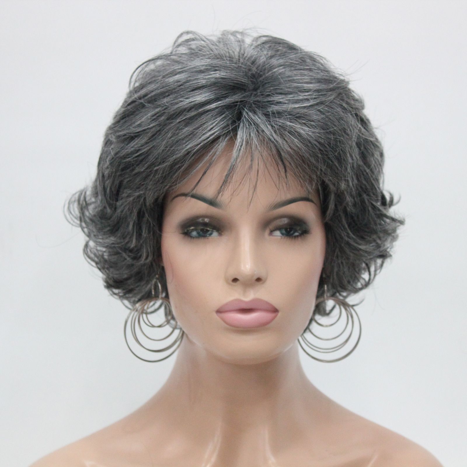 Compre 2017 Nueva Moda Salud Ondulado Rizado Medio Gris Peluca De Cabello Corto Ondulado 2017 Image Source @ es.dhgate.com